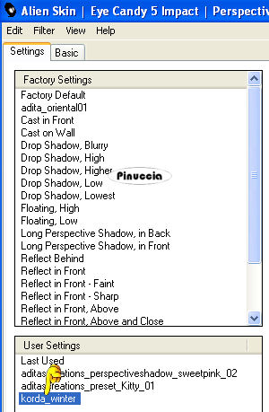 Effetti>Plugins>Alien Skin Eye Candy 5 Impact - Perspective Shadow, con i settaggi precedenti.