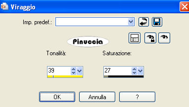 Regola>Tonalità e saturazione>Viraggio, con i settaggi precedenti.