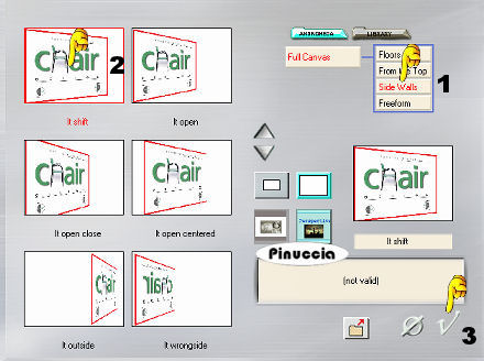 Nella successiva schermata seleziona prima "Side Walls" (1) e poi "it shit" (2) quindi clicca sul segno di spunta per confermare (3)