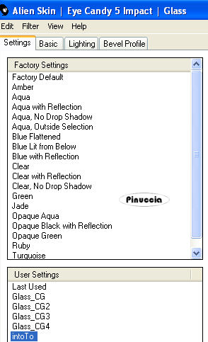 Effetti>Plugins>Alien Skin Eye Candy 5 Impact - Glass: