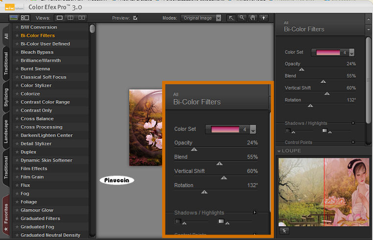 a sinistra seleziona Bi-Color Filters e, a destra, imposta i seguenti settaggi.