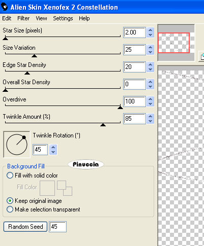 Ripeti l'Effetto Constellation con gli stessi settaggi, ma cliccando una volta su Random Seed.