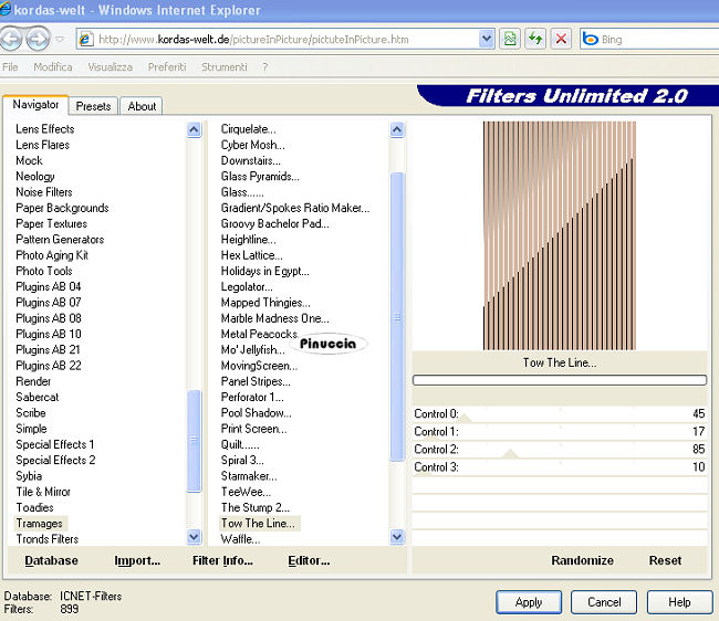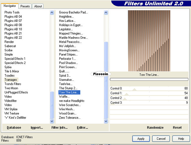 Effetti>Plugins>Filters Unlimited - Tramages - Tow The Line, con i seguenti settaggi.