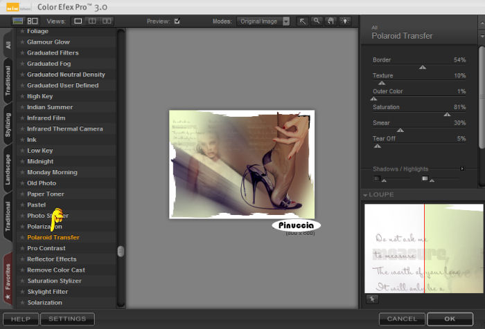 Nella colonna a sinistra seleziona Polaroid Transfer: