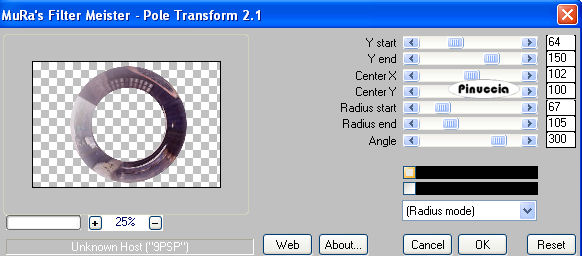 Effetti>Plugins>Mura's Meister - Pole Transform con i settaggi precedenti.