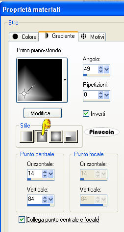 Passa il colore di primo piano a Gradiente di primo piano/sfondo, con i seguenti settaggi: