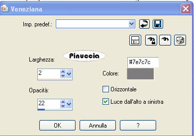 Effetti>Effetti di trama>Veneziana, con i seguenti settaggi.