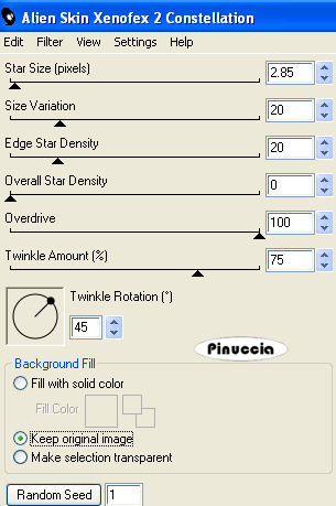Effetti>Plugins>Alien Skin Xenofex - Constellation, con i seguenti settaggi: