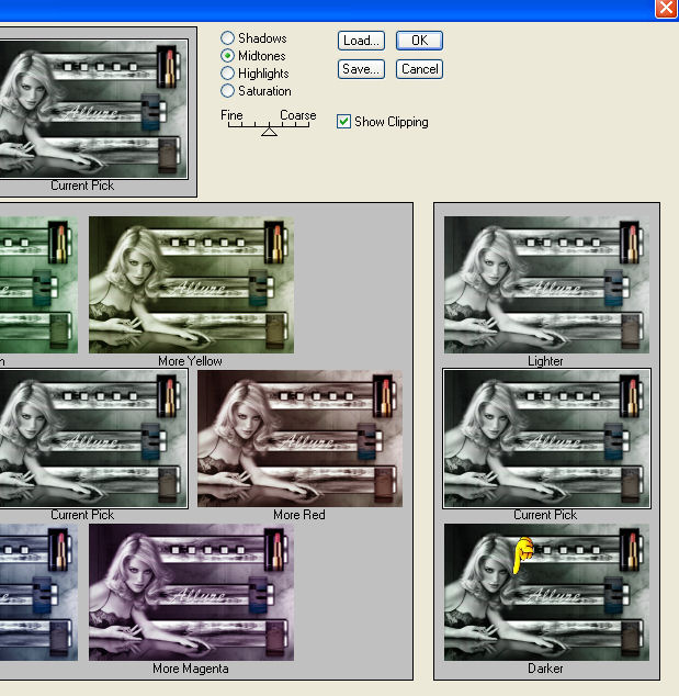 Effetti>Plugins>Adjust Variations - clicca una volta su Darker e ok.