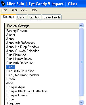 4. Effetti>Plugins>Alien Skin Eye Candy 5 Impact - Glass: