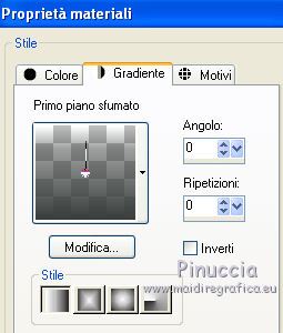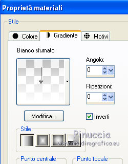 Passa il colore di primo piano a Gradiente e seleziona il gradiente Bianco sfumato con i seguenti settaggi.