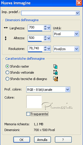 1. Apri una nuova immagine bianca 700 x 500 pixels.