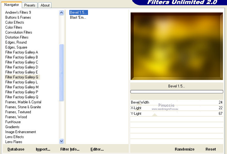 Effetti>Plugins>Filters Unlimited - Filter Factory Gallery G - Bevel 1.5.