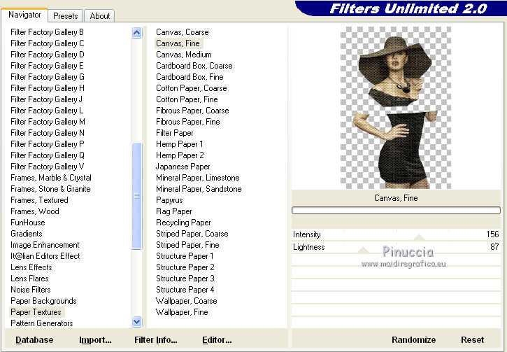 Effetti>Plugins>Filters Unlimited 2.0 - Paper Textures - Canvas,Fine, con i settaggi standard.