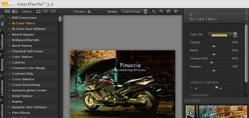 Effetti>Plugins>Nik Software - Bi-Color Filters - Color set Moss 1.