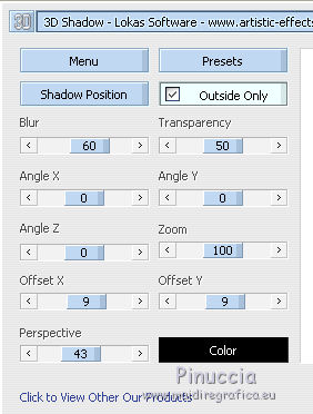 Effetti>Plugins>Lokas software - 3D Shadow, con i settaggi precedenti.