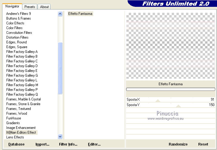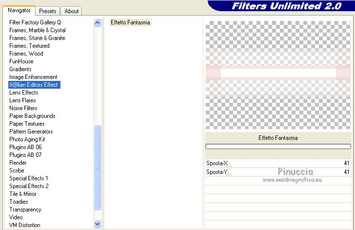 Effetti>Plugins>Filters Unlimited - Italian editors Effect - Effetto Fantasma, con i settaggi standard.