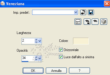Effetti>Effetti di trama>Veneziana, con i settaggi precedenti, con il colore di sfondo.
