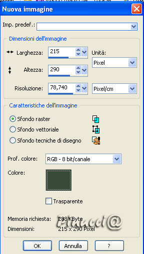 2. Apri una nuova immagine 215 x 290, con il colore di sfondo #384a38.