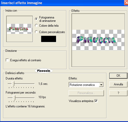 Effetti>Inserisci Effetto immagine - seleziona Rotazione cromatica con i seguenti settaggi:
