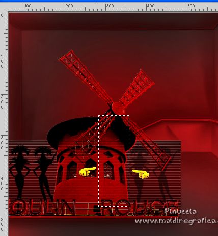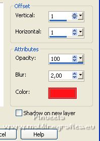 Effects>3D Effects>Drop Shadow, color #ff151a.
