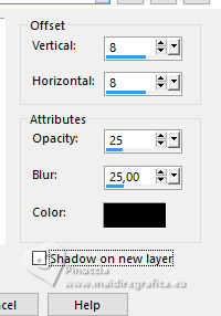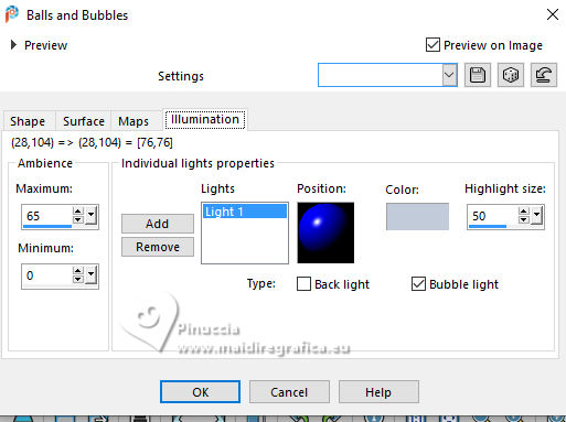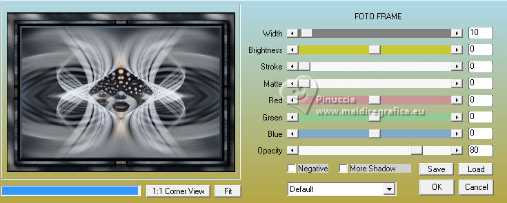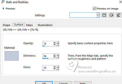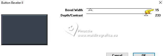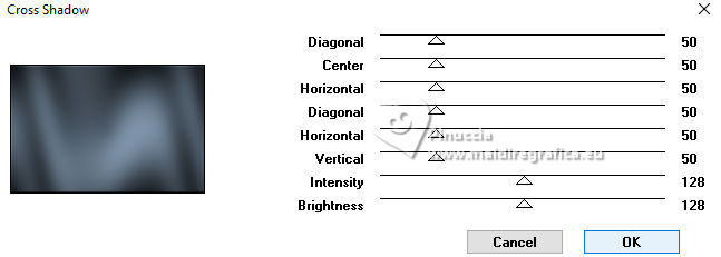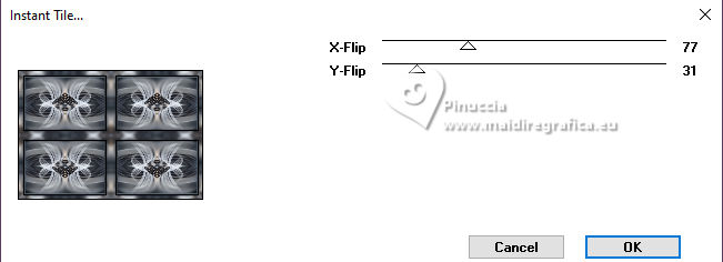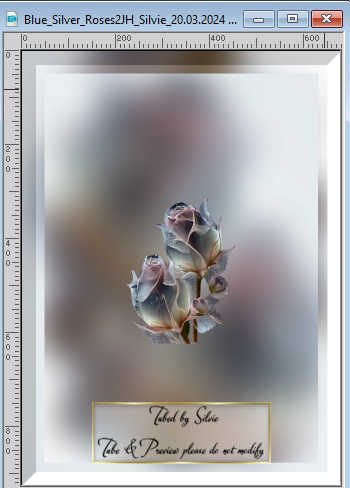 For this tutorial, you will need: ![]() Thanks for the tubes Beatriz and Silvie, and for the mask Narah. The rest of the material is by Lady Tess. (you find here the links to the material authors' sites) ![]() consult, if necessary, my filter section here Filters Unlimited 2.0 here Mura's Meister - Copies here Graphics Plus - Button Beveler II, Cross Shadow here FM Tile Tools - Saturation Emboss, Blend Emboss here VM Toolbox - Instant Tile here AAA Frames - Transparent Frame, Foto Frame here Filters Graphics Plus and VM Toolbox can be used alone or imported into Filters Unlimited. (How do, you see here) If a plugin supplied appears with this icon ![]() You can change Blend Modes according to your colors. ![]() Copy the Selections in the Selection Folder. Open the mask in PSP and minimize it with the rest of the material. 1. Set your foreground color to #c1cbd9 and your background color to #39424d. ![]() 2. Open a new transparent image 900 x 600 pixels. Flood Fill the transparent image with your background color #39424d.Effects>Plugins>Graphics Plus - Button Beveler II. ![]() 3. Selections>Load/Save Selection>Load Selection from Disk. Look for and load the selection Night_Dream_sel_1 ![]() Effects>Plugins>Graphics Plus - Cross Shadow, default settings. ![]() NOTE: Depending on your colors, lower the opacity of the last two selectors. Layers>New Raster Layer. 4. Open 4957-woman IA-LB TUBES ![]() Edit>Copy. Minimize the tube Go back to your work and go to Edit>Paste into Selection. Selections>Select None. Adjust>Blur>Radial Blur. ![]() Effects>Reflection Effects>Rotating Mirror. ![]() 5. Selections>Load/Save Selection>Load Selection from Disk. Look for and load the selection Night_Dream_sel_3 ![]() Press CANC on the keyboard ![]() Selections>Select None. Layers>Duplicate. Image>Mirror>Mirror Vertical. K key to activate your Pick Tool ![]() Position X: 0,00 - Position Y: 316,00. ![]() M key to deselect the Tool. 6. We have this ![]() 7. Layers>Merge>Merge Down. Selections>Load/Save Selection>Load Selection from Disk. Look for and load again the selection Night_Dream_sel_1 ![]() Selections>Invert. Press CANC on the keyboard ![]() Selections>Select None. 8. ---------------------------------------------------- NOTE: the next deco is in the material, if you use it, go to step 11. You can colorize it to your liking. ---------------------------------------------------- Selections>Load/Save Selection>Load Selection from Disk. Look for and load the selection Night_Dream_sel_2 ![]() Activate the layer Raster 1. Selections>Promote Selection to Layer. Layers>Arrange>Bring to Top. Keep selected. Effects>Artistic Effects>Balls and Bubbles. Shape ![]() Surface - Material: foreground color #c1cbd9 ![]() Illumination - Color: foreground color #c1cbd9 ![]() Selections>Select None. 9. Effects>3D Effects>Drop shadow, color #000000. ![]() Repeat Drop Shadow vertical and horizontal -8. Effects>Reflection Effects>Feedback. ![]() Effects>Plugins>Mura's Meister - Copies ![]() Edit>Copy. Edit>Paste as new image, and minimize this image for the moment. 10. Go back to your work. Layers>Delete. Result: ![]() 11. Layers>New Raster Layer. Flood Fill with your foreground color #c1cbd9.Layers>New Mask layer>From image Open the menu under the source window and you'll see all the files open. Select the mask Narah_Mask_1480 . ![]() Effects>Edge Effects>Enhance. Layers>Merge>Merge Group. K key to activate your Pick Tool ![]() Position X: 435,00 - Position Y: 0,00. ![]() M key to deselect the Tool. 12. Layers>Duplicate. Image>Mirror>Mirror Horizontal. Layers>Merge>Merge Down. Change the Blend Mode of this layer to Screen. Effects>Edge Effects>Enhance. 13. We have this. ![]() 14. Open the tube Face_image ![]() Edit>Copy. Go back to your work and go to Edit>Paste as new layer. Effects>Plugins>Mura's Meister - Copies ![]() Layers>Duplicate. Image>Mirror>Mirror Horizontal. 15. Layers>Merge>Merge Down. K key to activate your Pick Tool ![]() Position X: 289,00 - Position Y: 191,00. ![]() M key to deselect the Tool. Reduce the opacity of this layer to 63%. Layers>Arrange>Move Down. Adjust>Sharpness>Sharpen. 16. We have this ![]() 17. NOTE: with your Eraser Tool ![]() erase what is extra over the head ![]() Edit>Copy Special>Copy Merged. Edit>Paste as new image, and minimize also this image. Go back to your work. Image>Add borders, 1 pixel, symmetric, color #000000. Effects>Plugins>AAA Frames - Transparent Frame. ![]() 18. Selections>Select All. Image>Add borders, 45 pixels, symmetric, color #ffffff. Selections>Invert. Activate the image minimized at step 17 ![]() Edit>Copy. Go back to your work and go to Edit>Paste into Selection. Selections>Invert. 19. Effects>Image Effects>Seamless Tiling. ![]() Again Selections>Invert. Adjust>Blur>Gaussian Blur - radius 15. ![]() Effects>Plugins>VM Toolbox - Instant Tile, default settings ![]() 20. Effects>Plugins>AAA Frames - Foto Frame ![]() Effects>Reflection Effects>Rotating Mirror, default settings. ![]() Selections>Select None. 21. Activate again the tube 4957-woman IA-LB TUBES and go to Edit>Copy. Go back to your work and go to Edit>Paste as new layer. K key to activate your Pick Tool ![]() Position X: 27,00 - Position Y: 28,00. ![]() M key to deselect the Tool. Adjust>Sharpness>Sharpen. 22. Activate the image minimized at step 9 ![]() Edit>Copy. Go back to your work and go to Edit>Paste as new layer. Image>Mirror>Mirror Horizontal. Objects>Align>Right K key to activate your Pick Tool ![]() Position X: 483,00 - Position Y: -13,00. ![]() M key to deselect the Tool. Reduce the opacity of this layer to 65%. NOTE: erase the circles left on the central face![]() 23. Layers>Duplicate. Image>Mirror>Mirror Vertical. Image>Mirror>Mirror Horizontal. Layers>Arrange>Move Down - 2 times - under your main tube. Again Layers>Duplicate. Image>Mirror>Mirror Horizontal. 24. Open Blue_Silver_Roses2JH_Silvie_20.03.2024 ![]() Edit>Copy. Go back to your work and go to Edit>Paste as new layer. K key to activate yo