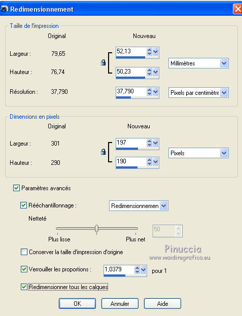 Image>Redimensionner, 190 pixels de hauteur, redimensionner tous les calques et verrouiller les proportions sélectionnés.