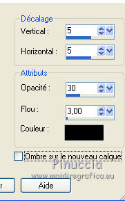 Effets>Effets 3D>Ombre portée, mêmes règlages utilisés pour le tube de la femme.