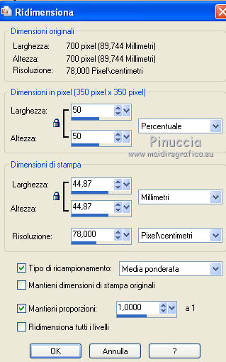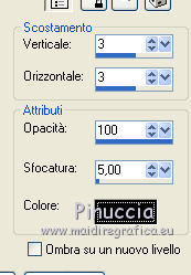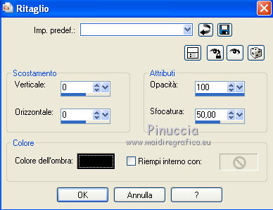 qui puoi trovare qualche risposta ai tuoi dubbi. Se l'argomento che ti interessa non è presente, ti prego di segnalarmelo. Questo tutorial è stato scritto con PSP X2, ma può essere eseguito anche con le altre versioni di PSP. Il copyright del tutorial e del poser appartiene a Laguna Azul. Il copyright della traduzione è mio. Il copyright dei tubes e delle immagini appartiene ai rispettivi artisti. Per favore, rispetta il lavoro degli autori. traduzione in francese/traduction en français qui Occorrente: Tre tubes a scelta. Lo scrapkit di che puoi scaricare qui http://simplysensationalscraps.blogspot.de/2009/01/new-kit-dainty-love.html Il resto del materiale (il template) qui Filtri: Xero - Clarity qui ![]() 1. Apri il template "LA-TEMPLATE 06", che sarà la base del tuo lavoro. Elimina i due livelli superiori del watermark e dei termini d'uso. 2. Apri e attiva il livello "KREISS GROSS". Attiva lo strumento Bacchetta magica , sfumatura e tolleranza 0,e clicca nel cerchio per selezionarlo. Selezione>Modifica>Espandi - 1 pixels. 3. Dallo scrapkit, cartella Papers, apri "PAPER6" e vai a Modifica>Copia. Torna al tuo lavoro e vai a Modifica>Incolla nella selezione. Selezione>Deseleziona. Effetti>Effetti 3D>Sfalsa ombra. ![]() 4. Dallo scrapkit, cartella Frames, apri "LACEFRAME1", e vai a Modifica>Copia. Torna al tuo lavoro e vai a Modifica>Incolla come nuovo livello. Effetti>Effetti di immagine>Scostamento. ![]() 5. Clicca nella cornice per selezionarla, con la bacchetta magica ![]() Selezione>Modifica>Espandi - 4 pixels. Livelli>Nuovo livello raster. Effetti>Effetti 3D>Ritaglio. ![]() Selezione>Deseleziona. Livelli>Disponi>Sposta giù. 6. Attiva nuovamente il livello della cornice. Effetti>Effetti 3D>Sfalsa ombra. ![]() 7. Apri e attiva il livello "LINIEN SCHMAL". Selezione>Seleziona tutto. Selezione>Mobile. 8. Dallo scrapkit, cartella Papers, apri "PAPER15" e vai a Modifica>Copia. Torna al tuo lavoro e vai a Modifica>Incolla nella selezione. Selezione>Deseleziona. Effetti>Effetti 3D>Sfalsa ombra. ![]() 9. Apri e attiva il livello "Dashed". Selezione>Seleziona tutto. Selezione>Mobile. Dallo scrapkit, cartella Papers, apri "PAPER3" e vai a Modifica>Copia. Torna al tuo lavoro e vai a Modifica>Incolla nella selezione. Selezione>Deseleziona. Effetti>Effetti 3D>Sfalsa ombra. ![]() 10. Apri e attiva il livello "RECHTECK 1". Seleziona il rettangolo con la bacchetta magica ![]() Dallo scrapkit, cartella Papers, apri "PAPER18" e vai a Modifica>Copia. Torna al tuo lavoro e vai a Modifica>Incolla nella selezione. Selezione>Deseleziona. Effetti>Effetti 3D>Sfalsa ombra. ![]() 11. Apri e attiva il livello "RECHTECK 2". Seleziona il rettangolo con la bacchetta magica ![]() Dallo scrapkit, cartella Papers, apri "PAPER21" e vai a Modifica>Copia. Torna al tuo lavoro e vai a Modifica>Incolla come nuovo livello. Posiziona la carta nella selezione,in modo che sia visibile una riga di cuori. ![]() Selezione>Inverti. Premi sulla tastiera il tasto CANC. Selezione>Deseleziona. Effetti>Effetti 3D>Sfalsa ombra, con i settaggi precedenti. Puoi chiudere o eliminare il livello "RECHTECK 2". 12. Apri e attiva il livello "QUADRAT 1". Seleziona il quadrato con la bacchetta magica ![]() Dallo scrapkit, cartella Papers, apri "PAPER11" e vai a Modifica>Copia. Torna al tuo lavoro e vai a Modifica>Incolla nella selezione. Selezione>Deseleziona. Effetti>Effetti 3D>Sfalsa ombra. ![]() 13. Apri e attiva il livello "STRICH RAND". Effetti>Effetti 3D>Sfalsa ombra. ![]() 14. Apri e attiva il livello "QUADRAT 2". Seleziona il quadrato con la bacchetta magica ![]() Dallo scrapkit, cartella Papers, apri "PAPER4" e vai a Modifica>Copia. Torna al tuo lavoro e vai a Modifica>Incolla nella selezione. Selezione>Deseleziona. Effetti>Effetti 3D>Sfalsa ombra, come al punto 12. ![]() 15. Dallo scrapkit, cartella Elements, apri "ENVELOPE1" e vai a Modifica>Copia. Torna al tuo lavoro e vai a Modifica>Incolla come nuovo livello. Immagine>Ridimensiona, al 50%, tutti i livelli non selezionato. ![]() Immagine>Ruota per gradi - 30 gradi a sinistra. ![]() Regola>Messa a fuoco>Metti a fuoco. Sposta l'elemento in alto a sinistra, come nell'esempio.![]() Effetti>Effetti 3D>Sfalsa ombra, con i settaggi precedenti. 16. Dallo scrapkit, cartella Elements, apri "PEN2" e vai a Modifica>Copia. Torna al tuo lavoro e vai a Modifica>Incolla come nuovo livello. Immagine>Ruota per gradi - 30 gradi a destra. ![]() Regola>Messa a fuoco>Metti a fuoco. Sposta la penna sulla busta.![]() Effetti>Effetti 3D>Sfalsa ombra, con i settaggi precedenti. 17. Dallo scrapkit, cartella Elements, apri "RIBBON3" e vai a Modifica>Copia. Torna al tuo lavoro e vai a Modifica>Incolla come nuovo livello. Sposta il nastro in basso.![]() Effetti>Effetti 3D>Sfalsa ombra, con i settaggi precedenti. 18. Dallo scrapkit, cartella Elements, apri "ROSE1" e vai a Modifica>Copia. Torna al tuo lavoro e vai a Modifica>Incolla come nuovo livello. Sposta l'elemento sulla penna, come nell'esempio.![]() Effetti>Effetti 3D>Sfalsa ombra, con i settaggi precedenti. 19. Apri e attiva il livello "DECO". Seleziona con la bacchetta magica ![]() Dallo scrapkit, cartella Papers, apri "PAPER7" e vai a Modifica>Copia. Torna al tuo lavoro e vai a Modifica>Incolla nella selezione. Selezione>Deseleziona. Effetti>Effetti 3D>Sfalsa ombra, con i settaggi precedenti. 20. Apri e attiva il livello "HERZ". Dallo scrapkit, cartella Elements, apri "BEADEDHEART3" e vai a Modifica>Copia. Torna al tuo lavoro e vai a Modifica>Incolla come nuovo livello. Immagine>Ridimensiona, al 75%, tutti i livelli non selezionato. Immagine>Ruota per gradi - 25 gradi a destra. ![]() Regola>Messa a fuoco>Metti a fuoco. Sposta il cuore sulla forma grigia.![]() Effetti>Effetti 3D>Sfalsa ombra, con i settaggi precedenti. Puoi eliminare il livello "HERZ". 21. Dallo scrapkit, cartella Elements, apri "WRAP3" e vai a Modifica>Copia. Torna al tuo lavoro e vai a Modifica>Incolla come nuovo livello. Spostalo in basso come nell'esempio.![]() Effetti>Effetti 3D>