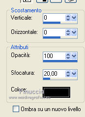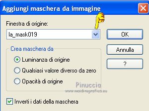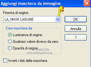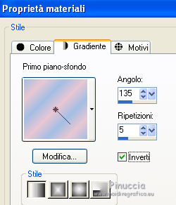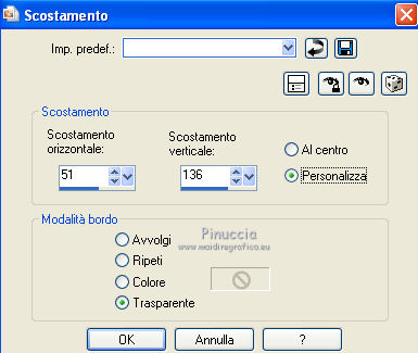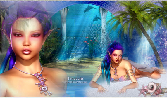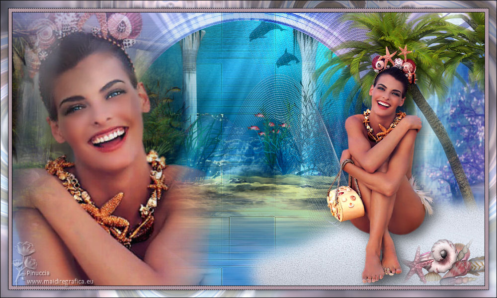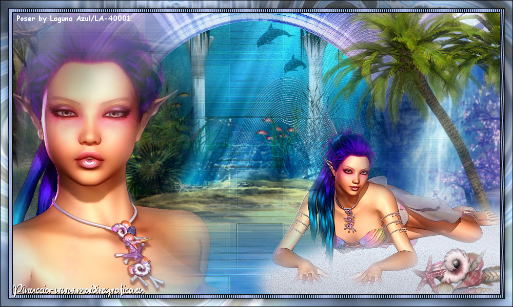 qui puoi trovare qualche risposta ai tuoi dubbi. Se l'argomento che ti interessa non è presente, ti prego di segnalarmelo. Questo tutorial è stato scritto con PSP X2 e tradotto con Corel X, ma può essere eseguito anche con le altre versioni di PSP. Dalla versione X4, il comando Immagine>Rifletti è stato sostituito con Immagine>Capovolgi in orizzontale, e il comando Immagine>Capovolgi con Immagine>Capovolgi in verticale. Nelle versioni X5 e X6, le funzioni sono state migliorate rendendo disponibile il menu Oggetti. Vedi la scheda sull'argomento qui Il copyright del tutorial e del poser appartiene a Laguna Azul. Il copyright della traduzione è mio. Il copyright dei tubes e delle immagini appartiene ai rispettivi artisti. Per favore, rispetta il lavoro degli autori. traduzione francese quiOccorrente: Tubes a scelta (sono stati tolti dal materiale perchè non sono più liberi per la condivisione). Materiale qui Per il tube del mio esempio, grazie Toacha. Filtri: in caso di dubbi, ricorda di consultare la mia sezione filtri qui Filters Unlimited 2.0 qui Cybia Screenworks qui Graphics Plus - Cross Shadow qui I filtri Cybia e Graphics plus si possono usare da soli o importati in Filters Unlimited (come fare vedi qui) Se un filtro fornito appare con questa icona ![]() non esitare a cambiare modalità di miscelatura e opacità secondo i colori utilizzati. Nelle ultime versioni di PSP non c'è il gradiente di primo piano/sfondo (Corel_06_029) Puoi usare i gradienti delle versioni precedenti. Trovi qui i gradienti Corel X. Metti la selezione nella cartella Selezioni. Apri le maschere in PSP e minimizzale con il resto del materiale. Scegli un colore brillante e uno tenue dal tuo tube. Per il mio esempio: imposta il colore di primo piano con #e9c7d2, e il colore di sfondo con #a2bee4. ![]() Ecco alcuni esempi di corretti abbinamenti ![]() Passa il colore di primo piano a Gradiente di primo piano/sfondo, stile Lineare. ![]() Apri una nuova immagine trasparente 950 x 550 pixels, riempila con il gradiente.2. Regola>Sfocatura>Sfocatura radiale. ![]() 3. Apri il tube "LA_RADIANT WHITE" e vai a Modifica>Copia. Torna al tuo lavoro e vai a Modifica>Incolla come nuovo livello. Effetti>Effetti di immagine>Scostamento. ![]() Cambia la modalità di miscelatura di questo livello in Indebolisci 4. Scegli e apri uno degli sfondi marini forniti con il materiale. Immagine>Ridimensiona - a 550-600 pixels di altezza. Modifica>Copia. Torna al tuo lavoro e vai a Modifica>Incolla come nuovo livello. Selezione>Carica/Salva selezione>Carica selezione da disco. Cerca e carica la selezione "LA_BL". ![]() Premi sulla tastiera il tasto CANC. Selezione>Deseleziona. 5. Livelli>Nuovo livello raster. Riempi con il colore di sfondo.Regola>Luminosità e contrasto>Luminosità e contrasto. ![]() Livelli>Nuovo livello maschera>Da immagine. Apri il menu sotto la finestra di origine e vedrai la lista dei files aperti. Seleziona la maschera "LA_MASK LAGUNE". ![]() Livelli>Unisci>Unisci gruppo. Effetti>Plugins>Graphics Plus - Cross Shadow, con i settaggi standard. ![]() Cambia la modalità di miscelatura di questo livello in Rafforza. 6. Apri il tube "LA_WATER" e vai a Modifica>Copia. Torna al tuo lavoro e vai a Modifica>Incolla come nuovo livello. Spostalo in basso, come nel mio esempio.![]() 7. Apri il tube "LA_SINEDOT" e vai a Modifica>Copia. Torna al tuo lavoro e vai a Modifica>Incolla come nuovo livello. Spostalo un po' più a destra, come nel mio esempio.![]() 8. Apri il tube "LA_WATERFALL misted 1" e vai a Modifica>Copia. Torna al tuo lavoro e vai a Modifica>Incolla come nuovo livello. Spostalo a destra.![]() 9. Livelli>Nuovo livello raster. Riempi con il colore di sfondo.Livelli>Nuovo livello maschera>Da immagine. Apri il menu sotto la finestra di origine e seleziona la maschera "la_mask019". ![]() Livelli>Unisci>Unisci gruppo. Cambia la modalità di miscelatura di questo livello in Moltiplica. Se è troppo scuro per te, rendilo un po' più trasparente. Effetti>Effetti di bordo>Aumenta. 10. Apri il tube "LA_PALM DUO misted". Immagine>Ridimensiona, a 550 pixels di altezza. Regola>Messa a fuoco>Metti a fuoco. Modifica>Copia. Torna al tuo lavoro e vai a Modifica>Incolla come nuovo livello. Spostalo a destra, lasciando fuori dal bordo quasi tutto l'albero a destra,come nel mio esempio. ![]() 11. Apri il tube "LA_SAND" e vai a Modifica>Copia. Torna al tuo lavoro e vai a Modifica>Incolla come nuovo livello. Spostalo nell'angolo in basso a destra.![]() 12. Scegli e apri uno dei tube con le conchiglie. Modifica>Copia. Torna al tuo lavoro e vai a Modifica>Incolla come nuovo livello. Immagine>Ridimensiona, al 50%, tutti i livelli non selezionato. ![]() Regola>Messa a fuoco>Metti a fuoco. Selezione>Seleziona tutto. Selezione>Mobile. Selezione>Modifica>Sfuma - 40 pixels. Selezione>Inverti. Premi sulla tastiera il tasto CANC .Selezione>Deseleziona. Spostalo nell'angolo in basso a destra.![]() 13. Apri il tuo tube raffigurante un personaggio disteso o seduto. Modifica>Copia. Torna al tuo lavoro e vai a Modifica>Incolla come nuovo livello. Immagine>Ridimensiona, al 60%, tutti i livelli non selezionato. Regola>Messa a fuoco>Metti a fuoco. Spostalo come nel mio esempio.![]() questo passaggio è facoltativo: è stato usato per il tube della prima versione del tutorial; nell'aggiornamento del tutorial il passaggio è stato saltato Selezione>Seleziona tutto. Selezione>Mobile. Selezione>Modifica>Sfuma - 40 pixels. Selezione>Inverti. Premi sulla tastiera il tasto CANC. Selezione>Deseleziona. Aggiungi se vuoi - dipende dal tube - un'ombra sotto il tube (meglio se con l'Effetto Alien Skin Eye Candy 5 Impact - Perspective Shadow). 14. Apri il tube "LA_WATERFALL misted 2" e vai a Modifica>Copia. Torna al tuo lavoro e vai a Modifica>Incolla come nuovo livello. Spostalo a sinistra, come nel mio esempio.![]() 15. Scegli e apri il tube di un ritratto sfumato (vedi il mio esempio). Immagine>Ridimensiona, tra il 50 e l'80% (dipende dal tuo tube). Regola>Messa