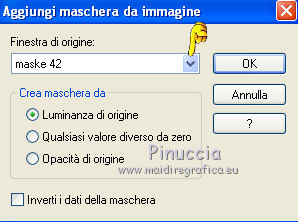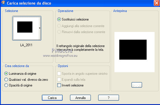 qui puoi trovare qualche risposta ai tuoi dubbi. Se l'argomento che ti interessa non è presente, ti prego di segnalarmelo. Questo tutorial è stato scritto con PSP X2, ma può essere eseguito anche con le altre versioni di PSP. Il copyright del tutorial, del materiale scrap e dei poser appartiene a Laguna Azul. Il copyright della traduzione è mio. Il copyright dei tubes e delle immagini appartiene ai rispettivi artisti. Per favore, rispetta il lavoro degli autori. Occorrente: Materiale qui Se vuoi l'intero scrapkit lo trovi qui Metti la selezione nella cartella Selezioni. Apri la maschera in PSP e minimizzala con il materiale. 1. Apri una nuova immagine trasparente 700 x 700 pixels. Apri l'immagine di sfondo "la_new year paper 3" e vai a Modifica>Copia. Torna al tuo lavoro e vai a Modifica>Incolla come nuovo livello. Livelli>Nuovo livello maschera>Da immagine. Apri il menu sotto la finestra di origine e vedrai la lista dei files aperti. Seleziona la maschera maske 42. ![]() Livelli>Unisci>Unisci gruppo. Effetti>Effetti 3D>Sfalsa ombra, con il colore nero. ![]() 2. Apri la cornice "la_new year frame diamants gold" o, se preferisci la cornice silver (argento), Immagine>Ridimensiona, a 640 pixels di larghezza. Regola>Messa a fuoco>Metti a fuoco. Modifica>Copia. Torna al tuo lavoro e vai a Modifica>Incolla come nuovo livello. Effetti>Effetti 3D>Sfalsa ombra, con il colore nero. ![]() 3. Apri lo sfondo "la_new year paper 8" e vai a Modifica>Copia. Torna al tuo lavoro e vai a Modifica>Incolla come nuovo livello. Livelli>Disponi>Sposta giù. Immagine>Immagine negativa. Selezione>Carica/Salva selezione>Carica selezione da disco. Cerca e carica la selezione "LA_2011". ![]() Premi sulla tastiera il tasto CANC. Selezione>Deseleziona. 4. Apri il tube "la_new year fireworks 3" e vai a Modifica>Copia. Torna al tuo lavoro e vai a Modifica>Incolla come nuovo livello. Immagine>Ridimensiona, al 40%, tutti i livelli non selezionato. Posiziona i fuochi come nell'esempio.![]() 5. Apri il tube "la_new year fireworks 2" e vai a Modifica>Copia. Torna al tuo lavoro e vai a Modifica>Incolla come nuovo livello. Immagine>Ridimensiona, al 30%, tutti i livelli non selezionato. Posiziona i fuochi in basso a sinistra nella cornice.Apri il tube "la_new year stremers silver gold" e vai a Modifica>Copia. Torna al tuo lavoro e vai a Modifica>Incolla come nuovo livello. Posiziona i coriandoli come preferisci o vedi il mio esempio.Selezione>Carica/Salva selezione>Carica selezione da disco. Carica nuovamente la selezione "La_2011". Premi sulla tastiera il tasto CANC. Selezione>Deseleziona. 6. Scegli un drappo - per il mio esempio "la_drape silver". Immagine>Ridimensiona, a 400 pixels di altezza. Regola>Messa a fuoco>Metti a fuoco. Modifica>Copia. Torna al tuo lavoro e vai a Modifica>Incolla come nuovo livello. Sposta la tenda a destra, nella cornice.![]() Livelli>Duplica. Immagine>Rifletti. Posiziona correttamente la tenda sul bordo della cornice a sinistra.![]() Livelli>Unisci>Unisci giù. Selezione>Carica/Salva selezione>Carica selezione da disco. Carica nuovamente la selezoine "La_2011". Premi sulla tastiera il tasto CANC. Selezione>Deseleziona. 7. Attiva il livello superiore. Apri il tube di un palloncino - per il mio esempio "la_new year balloon silver 2" e vai a Modifica>Copia. Torna al tuo lavoro e vai a Modifica>Incolla come nuovo livello. Immagine>Ridimensiona, al 40%, tutti i livelli non selezionato. Regola>Messa a fuoco>Metti a fuoco. Spostalo a destra.Livelli>Duplica. Immagine>Rifletti. Sposta questo palloncino a sinistra.![]() Su entrambi i livelli: Effetti>Effetti 3D>Sfalsa ombra, con i settaggi precedenti. 8. Attiva il livello superiore. Apri il tube "la_new year sparkling wine set". Cancella il bicchiere a sinistra.Immagine>Ridimensiona, a 170 pixels di altezza. Regola>Messa a fuoco>Accentua messa a fuoco. Modifica>Copia. Torna al tuo lavoro e vai a Modifica>Incolla come nuovo livello. Spostalo nell'angolo in basso a destra.Effetti>Effetti 3D>Sfalsa ombra, con i settaggi precedenti. 9. Apri il tube "la_render_woman happy new year 2011" (o il tube che preferisci). Cancella il pacchetto a sinistra.Immagine>Ridimensiona, a 596 pixels di larghezza. Regola>Messa a fuoco>Metti a fuoco. Modifica>Copia. Torna al tuo lavoro e vai a Modifica>Incolla come nuovo livello. Spostalo nell'angolo in basso a sinistra.Effetti>Effetti 3D>Sfalsa ombra, con i settaggi precedenti. 10. Apri "la_new year transparenz flower gold" e vai a Modifica>Copia. Torna al tuo lavoro e vai a Modifica>Incolla come nuovo livello. Immagine>Ridimensiona, al 30%, tutti i livelli non selezionato. Regola>Messa a fuoco>Metti a fuoco. Spostalo in alto a sinistra, sulla cornice.Apri il tube di testo "la_wordart happy new year" (se preferisci, scrivi un tuo testo) e vai a Modifica>Copia. Torna al tuo lavoro e vai a Modifica>Incolla come nuovo livello. Spostalo in alto.Aggiungi il tuo nome e/o il tuo watermark, senza dimenticare il copyright delle immagini usate. Livelli>Unisci>Unisci visibile, e salva in formato png per mantenere la trasparenza dello sfondo. ![]() Se hai problemi o dubbi, o trovi un link non funzionante, o anche soltanto per dirmi che ti è piaciuto, scrivimi ![]() 2 Gennaio 2011 |