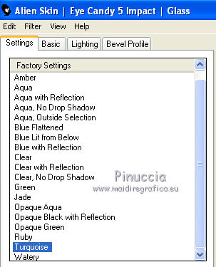Effetti>Plugins>Alien Skin Eye Candy 5 Impact - Glass, con i settaggi precedenti.