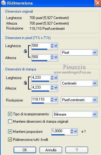 2. Immagine>Ridimensiona - 400 x 400 pixels, con i settaggi precedenti.