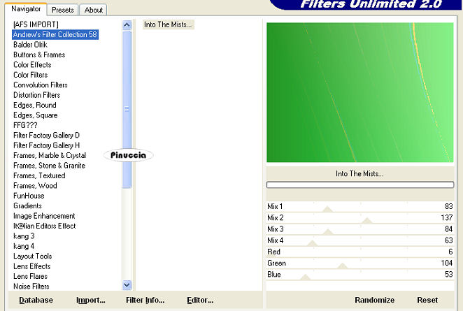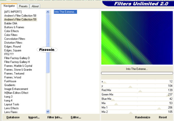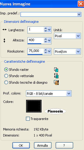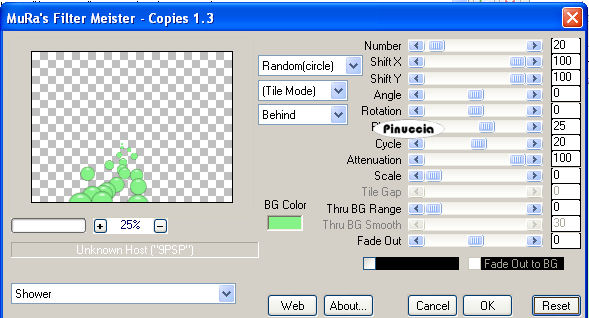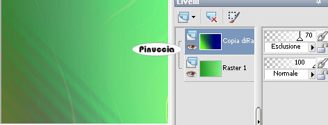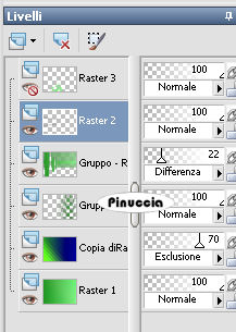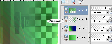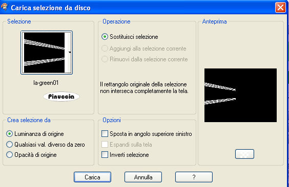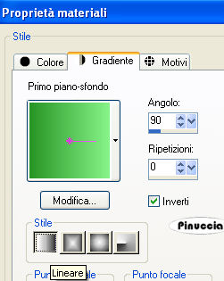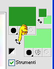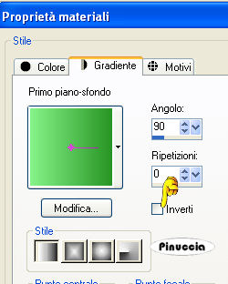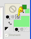 qui puoi trovare qualche risposta ai tuoi dubbi. Se l'argomento che ti interessa non è presente, ti prego di segnalarmelo. Questo tutorial è stato scritto con PSP X2, ma può essere eseguito anche con le altre versioni di PSP. Per tradurlo, ho usato PSP X. Il copyright del tutorial appartiene all'autrice. Il copyright della traduzione è mio. Per favore, rispetta il lavoro degli autori e mantieni i tube inalterati. Il copyright delle immagini usate è di Art in Black (il sito non è più in rete). Ringrazio Martin Black per avermi permesso di usare le sue immagini per questo tutorial. Occorrente: il tube di una donna; una piccola immagine (per esempio, un fiore, un paesaggio, o quello che preferisci). il resto del materiale qui Filtri: Mura's Meister - copies qui Filters Unlimited qui Andrew's Filter 58 qui Andrew's Filter 59 qui per usare i filtri Andrew's bisogna prima convertirli. Come fare vedi qui Si usano importandoli in Filters Unlimited (come fare vedi qui, ma possono funzionare anche da soli Metti le selezioni nella cartella Selezioni. Importa il pennello in PSP: File>Importa>Pennello personalizzato, cerca il pennelll nella cartella dove lo hai salvato - clicca "Aggiungi tutti", i pennelli passeranno nella finestra a destra; clicca ok e avrai i pennelli disponibili. Apri le maschere di Cameron e minimizzale nella tua area di lavoro. ![]() 1. Apri una nuova immagine trasparente 800 x 600 pixels. Scegli dal tuo tube un colore chiaro come colore di primo piano (il mio #8cf98e), e un colore scuro come colore di sfondo (il mio #007000). I colori non devono essere troppo intensi. Passa il colore di primo piano a Gradiente di primo piano/sfondo con i seguenti settaggi: ![]() Riempi l'immagine trasparente con il gradiente.2. Effetti>Plugins>Filters Unlimited - Andrew's Filters 58 - Into the Mists, con i settaggi standard. ![]() Livelli>Duplica. Effetti>Plugins>Filters Unlimited - Andrew's Filters 59 - Into the Extreme, con i settaggi standard. ![]() Cambia la modalità di miscelatura di questo livello in Esclusione, e abbassa l'opacità al 70%. ![]() 3. Livelli>Nuovo livello raster. Cambia i settaggi del gradiente togliendo la spunta a Inverti. ![]() Riempi il livello con il gradiente.Livelli>Nuovo livello maschera>Da immagine. Apri il menu sotto la finestra di origine e vedrai la lista dei files aperti. Seleziona la maschera maskcameronF49: ![]() Livelli>Unisci>Unisci gruppo. Effetti>Effetti 3D>Sfalsa ombra, con i seguenti settaggi, colore nero. ![]() 4. Livelli>Nuovo livello raster. Cambia nuovamente i settaggi del gradiente mettendo la spunta a inverti. ![]() Livelli>Nuovo livello maschera>Da immagine. Apri il menu sotto la finestra di origine e seleziona la maschera maskcameron_indie6: ![]() Livelli>Unisci>Unisci gruppo. Effetti>Effetti 3D>sfalsa ombra, con i settaggi precedenti. ![]() Cambia la modalità di miscelatura di questo livello in Differenza, e abbassa l'opacità al 22%. ![]() Effetti>Effetti 3D>sfalsa ombra, con i settaggi precedenti, ma con il colore bianco. ![]() 5. Livelli>Nuovo livello raster. Selezione>Carica/Salva selezione>Carica selezione da disco. Cerca e carica la selezione la-green01: ![]() Effetti>Effetti 3D>sfalsa ombra, con i seguenti settaggi, colore nero. ![]() Selezione>Deseleziona. 6. Nella paletta dei materiali clicca sulla freccia al centro per invertire i colori. Avrai così il colore scuro come colore di primo piano. ![]() Chiudi il colore scuro di primo piano. ![]() Attiva lo strumento Forme predefinite - Ellisse ![]() oppure premi sulla tastiera il tasto Q, e traccia un cerchio della dimensione di 100 x 100 pixels. Mentre disegni il cerchio, puoi controllare la dimensione nella barra di stato inferiore, (non preoccuparti degli altri dati, perchè non ti interessano). ![]() Livelli>Converti in livello raster. Sposta il cerchio pressappoco come nel mio esempio.![]() 7. Effetti>Plugins>Alien Skin Eye Candy 5 - Impact - Glass: prima seleziona "Clear", ![]() quindi imposta i seguenti settaggi: ![]() 8. Effetti>Plugins>Mura's Meister - Copies, con i seguenti settaggi: ![]() Nascondi questo livello e posizionati sul livello sottostante. ![]() Livelli>Unisci>Unisci visibile. Modifica>Copia, e metti da parte il tuo lavoro, per il momento. Modifica>Incolla come nuova IMMAGINE. 9. Immagine>ridimensiona, al 20%, tutti i livelli non selezionato. ![]() Scegli dal tuo tube la parte che ti piace oppure puoi scegliere anche un'altra piccola immagine. L'importante è che le dimensioni siano di 83 x 112 pixels. Modifica>Copia. Torna alla piccola immagine e vai a Modifica>Incolla come nuovo livello. Posiziona l'immagine un po' più a sinistra.![]() Cambia la modalità di miscelatura di questo livello in Luminanza (Esistente). Livelli>Duplica. Cambia la modalità di miscelatura di questo livello in Luce netta, oppure Sovrapponi (sperimenta quella che preferisci). Livelli>Unisci>Unisci tutto. 10. Immagine>Aggiungi bordatura, simmetriche non selezionato, con il colore nero ![]() ![]() Modifica>Copia. Torna al tuo lavoro che hai minimizzato prima. Ricordati di aprire il livello superiore e attivalo. Modifica>Incolla come nuovo livello. Spostalo a sinistra, come preferisci, o vedi il mio esempio.Livelli>Duplica, e sposta il duplicato un po più in basso e a sinistra.Dovresti avere qualcosa di simile: ![]() 11. Apri una nuova immagine NERA 1 x 400 pixels. ![]() Modifica>Copia. Torna al tuo lavoro e vai a Modifica>Incolla come nuovo livello. Livelli>Duplica, 3 volte, e posiziona le righe nei bordi delle piccole immagini, come nel mio esempio.![]() 12. Livelli>unisci>Unisci giù, e ripeti tre volte, avrai così le quattro linee nere in un unico livello. Effetti>Effetti 3D>sfalsa ombra, con i settaggi precedenti. ![]() 13.Livelli>Nuovo livello raster. Selezione>Carica/Salva selezione>Carica selezione da disco. Cerca e carica la selezione la-green02: ![]() Imposta il colore di primo piano con il nero, e riempi la selezione con questo colore.Selezione>Deseleziona. 14. Livelli>