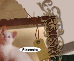 Effetti>Effetti 3D>Sfalsa ombra, con i settaggi precedenti.12. Apri il tube la_tag. Immagine>Ridimensiona, al 50%, tutti i livelli selezionato. Regola>Messa a fuoco>Metti a fuoco. Modifica>Copia. Torna al tuo lavoro e vai a Modifica>Incolla come nuovo livello. Immagine>Ruota per gradi - 20 gradi a sinistra: ![]() Spostalo a destra, o come preferisci.Apri il tube la_klammer e vai a Modifica>Copia. Torna al tuo lavoro e vai a Modifica>Incolla come nuovo livello. Spostalo come nell'esempio.![]() 13. Apri il tube la_clip e vai a Modifica>Copia. Torna al tuo lavoro e vai a Modifica>Incolla come nuovo livello. Spostalo un po' più a destra e in alto. Vedi l'esempio:![]() 14. Apri il tube la_flower06. Immagine>Ridimensiona, al 50%, tutti i livelli selezionato. Regola>Messa a fuoco>Metti a fuoco. Modifica>Copia. Torna al tuo lavoro e vai a Modifica>Incolla come nuovo livello. Spostalo in basso a destra, sul bordo del merletto.Effetti>Effetti 3D>Sfalsa ombra, con i settaggi precedenti. 15. Apri il tube la_bow03. Immagine>Ridimensiona, al 50%, tutti i livelli selezionato. Regola>Messa a fuoco>Metti a fuoco. Modifica>Copia. Torna al tuo lavoro e vai a Modifica>Incolla come nuovo livello. Immagine>Ruota per gradi - 15 gradi a sinistra: ![]() Spostalo in basso a sinistra sul bordo del merletto.Effetti>Effetti 3D>Sfalsa ombra, con i settaggi precedenti. 16. Attiva lo strumento Testo , scegli un font o usa quello fornito con il materiale e scrivi un testo sulla targhetta.Salva in formato jpg. Se vuoi mantenere lo sfondo trasparente (in questo caso dovrai chiudere il livello di sfondo) salva in formato png. Se hai problemi o dubbi, o trovi un link non funzionante, o anche soltanto per un saluto, scrivimi. 26 Febbraio 2009 |