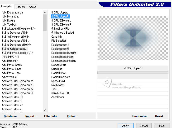 Effetti>Plugins>Filters Unlimited 2.0 - &<Bkg Kaleidoscope> - 4 QFlip UpperR