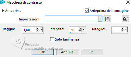 Regola>Messa a fuoco>Maschera di contrasto, con i settaggi precedenti.