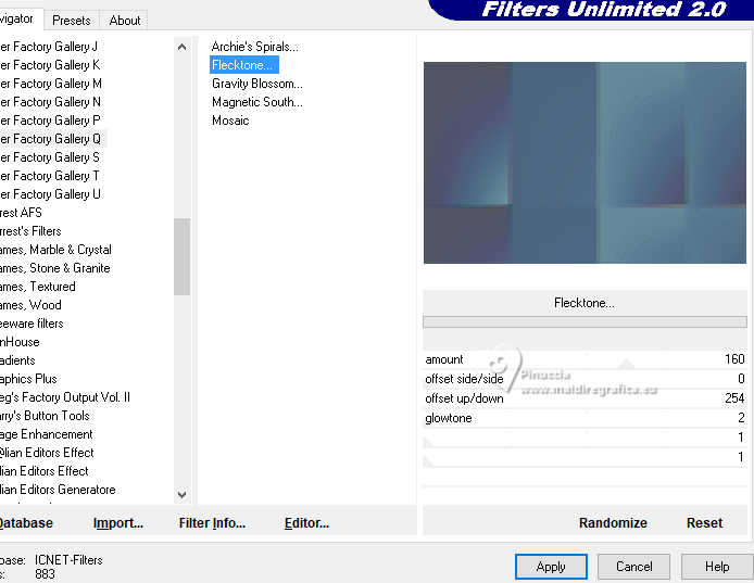 Effetti>Plugins>Filter Factory Gallery Q - Flecktone
