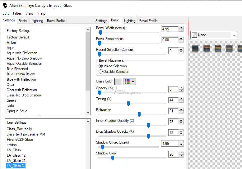 Effetti>Plugins>Alien Skin Eye Candy 5 Impact - Glass