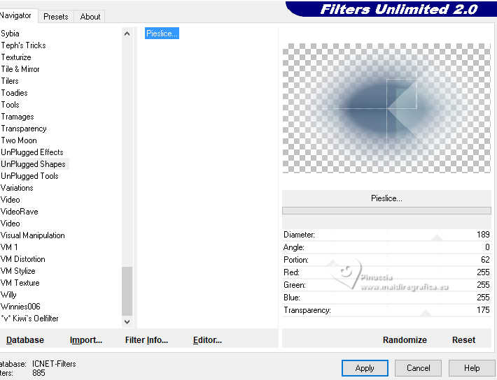 Effetti>Plugins>Filters Unlimited 2.0 - Unplugged Shapes - Pieslice