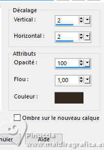 Répéter Effets>Effets 3D>Ombre portée, couleur 2