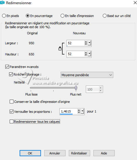 Image>Redimensionner, à 52%, redimensionner tous les calques décoché.