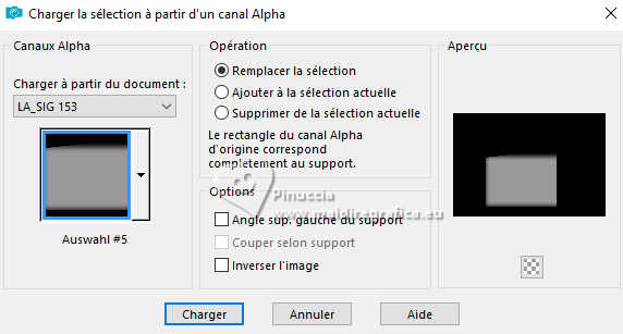 3. Sélections>Charger/Enregistrer une sélection>Charger à partir d'un canal alpha.