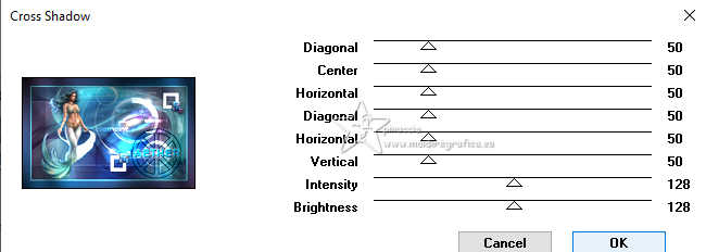 Effetti>Plugins>Graphics Plus - Cross Shadow, con i settaggi standard.