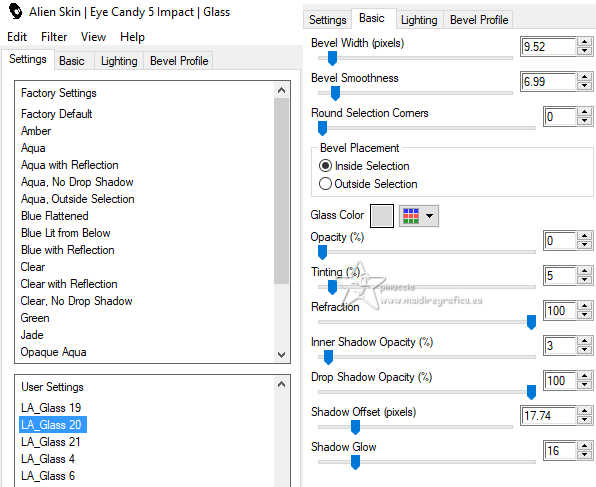 Effetti>Plugins>Alien Skin Eye Candy 5 Impact - Glass.