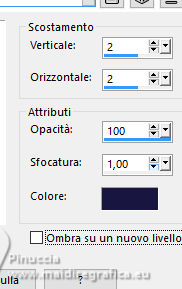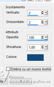 Effetti>Effetti 3D>Sfalsa ombra, a scelta; io ho usato l'ombra precedente con il colore 4.