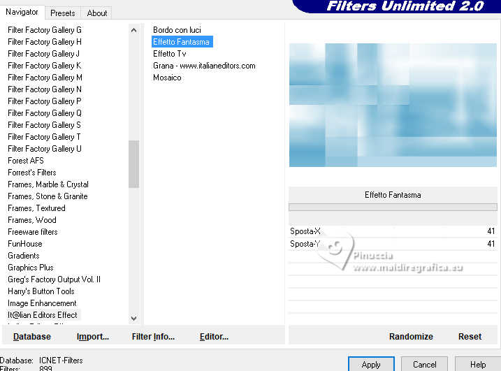 Effetti>Plugins>Filters Unlimited 2.0 - It@lian Editors Effect - Effetto Fantasma