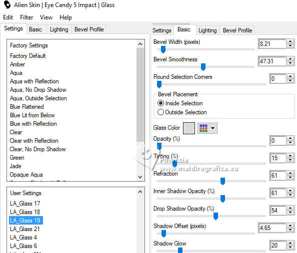 Effetti>Plugins>Alien Skin Eye Candy 5 Impact - Glass.