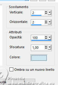 Effetti>Effetti 3D>Sfalsa ombra, con i settaggi precedenti, ma con il colore 2.
