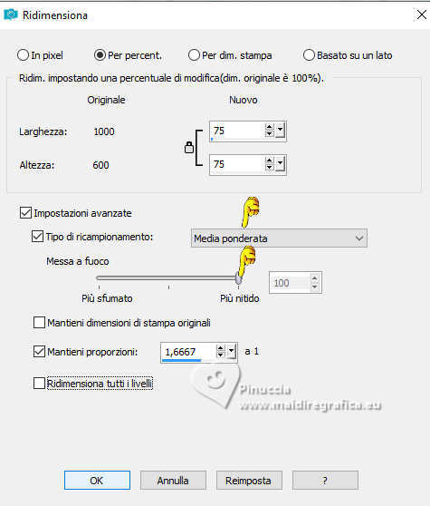 Immagine>Ridimensiona, al 75%, tutti i livelli non selezionato.